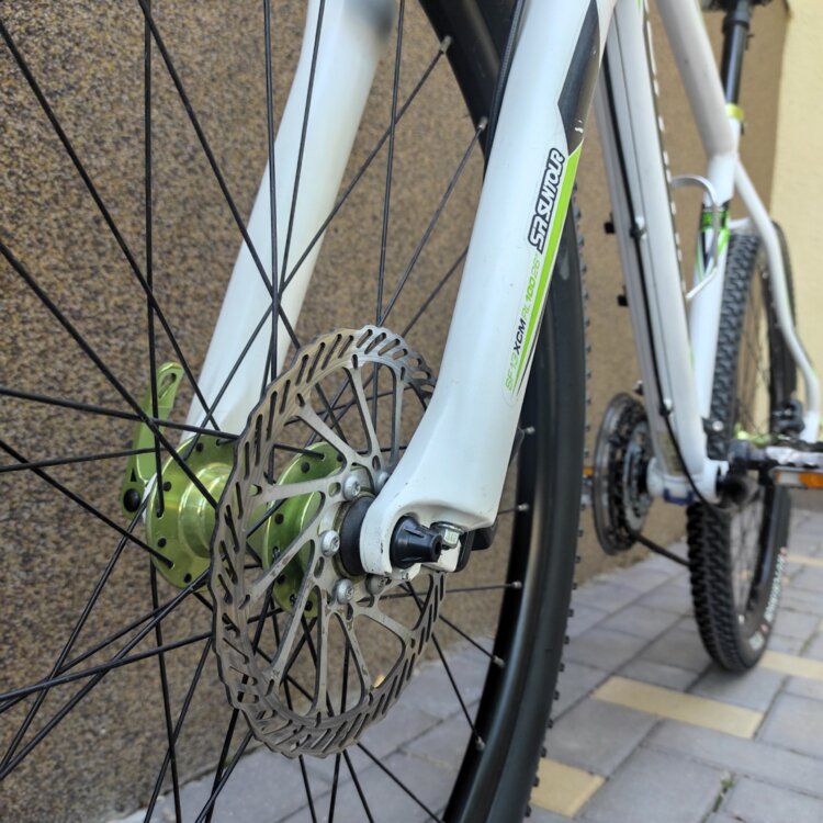 Колеса 26’, новая резина. Дисковые гидравлические тормоза Avid. Очень цепкие и эффективные.
