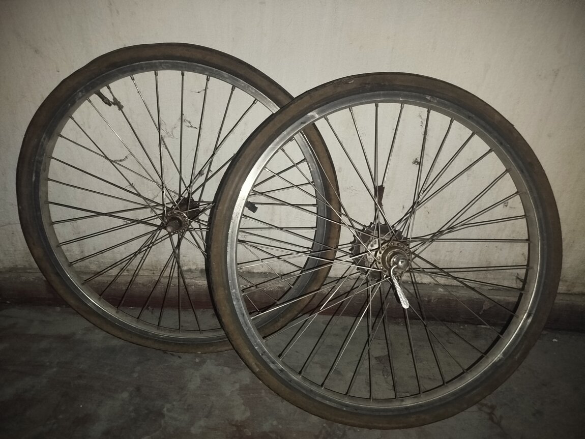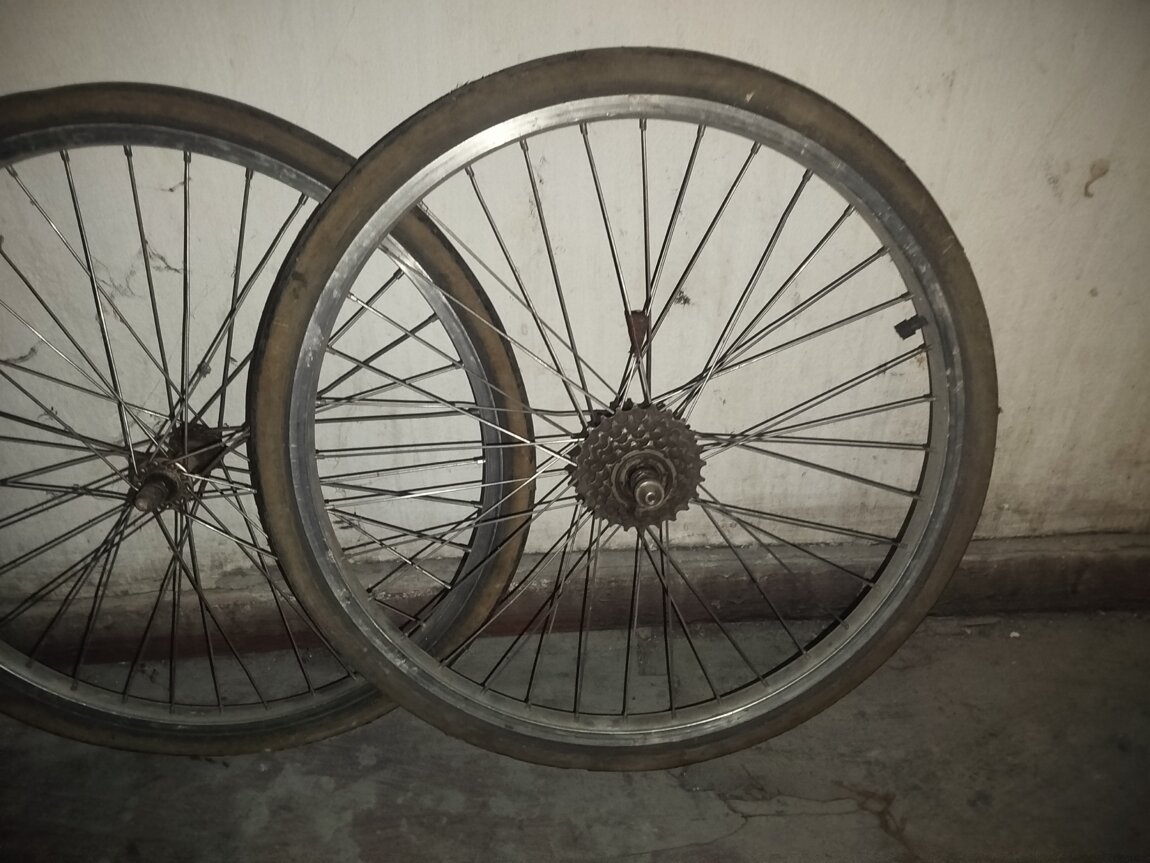 Без восьмерок, 5 скоростей. Одна камера целая. Покрышки в хлам. 150р за оба. Задние перекидки Shimano SIS 100р и Shimano Tourney 200р.. Манетка Shimano SIS 5ск. 75р. Руль диаметр 28 мм. 100р.