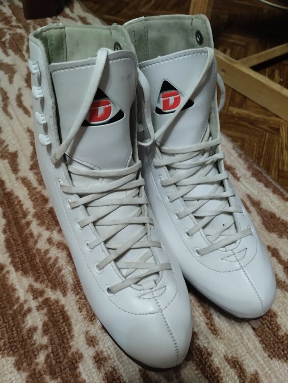 Прекрасные коньки, чистого белого цвета, в отличном состоянии, все будут смотреть на вас и завидовать, что вы используете не обычные синие, всеми используемые коньки, а свои собственные