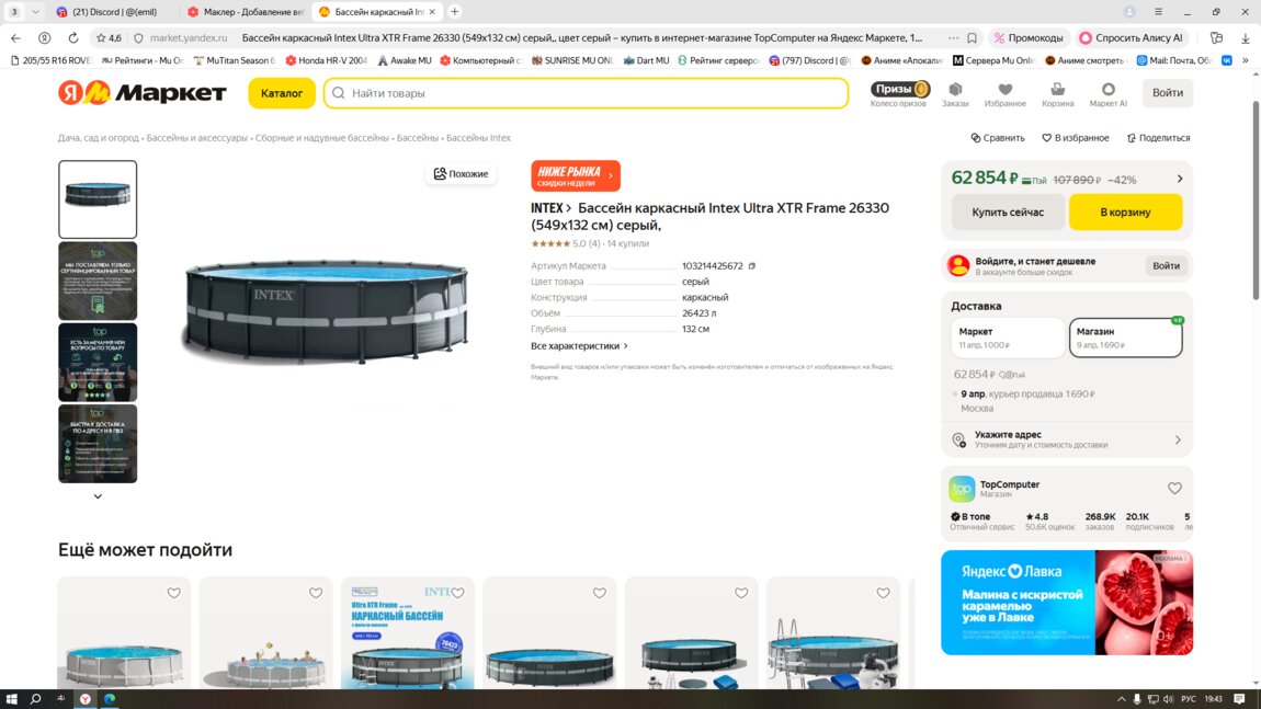 Бассейн на оцинкованном каркасе каркас в идеальном состоянии, по ткани есть проблемы только по дну пленка под низ спасает ситуацию бока в отличном состоянии только низ самой ткани есть в центре большая латка, бассейн брался за 24 тысячи в свое время сейчас такие не делают только сам каркас ножки стоят этих денег так как они не гниют и в отличном состоянии, бока ткани без дыр только по дну есть нюансы дно можно переклеить либо поставить пленку и оно может прожить еще не один сезон либо купить новую ткань сейчас они очень тонкие продаются лучше конечно эту починить фильтр есть но крыльчатка под замену, лестница есть но в плохом состоянии, только каркас и чаша вообщем, для тех кому интересно пишите в вайбер, поставить его можно легко пленка на 6 метров под низ и он своим весом прижимается и не течет либо залить дно эпоксидкой для утолщения самой ткани так как оно очень тонкое ишло с завода бока толстый брезент, а низ нет и очень быстро изнашивается, продаю так как двор очень маленький и в притирку к забору приходится ставить его либо обмен на чуть меньше диаметром