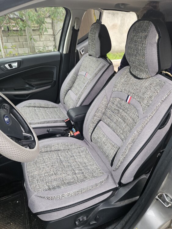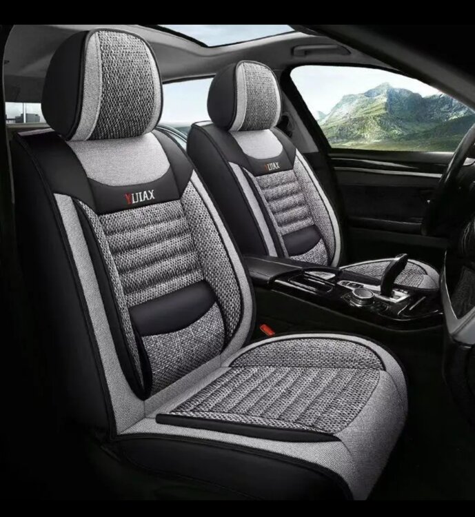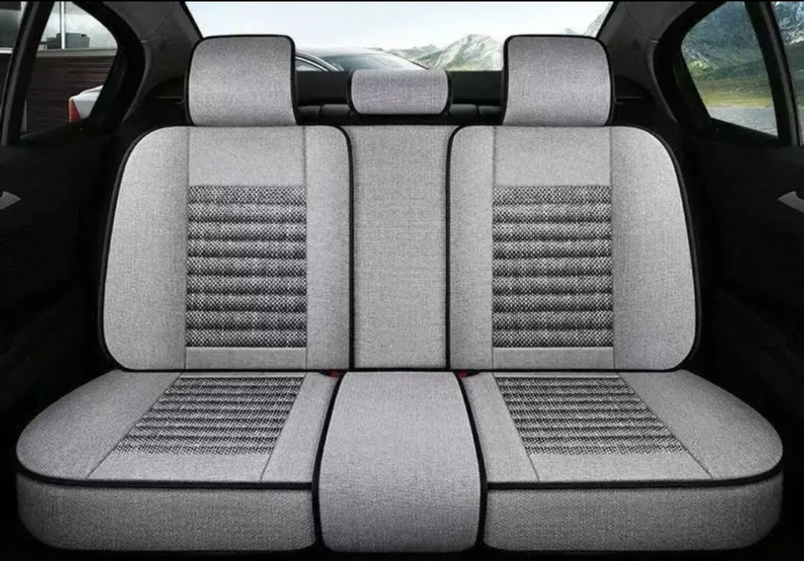 Продам универсальные чехлы премиального качества. Плотная ткань жакард, с отделкой из эко кожи. Цвет серый. Сзади черная кожа, есть кармашки в передних сиденьях.