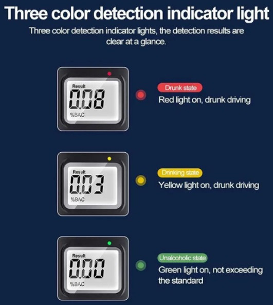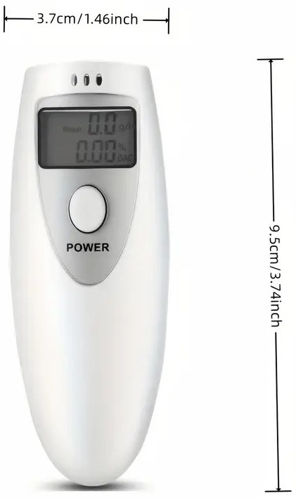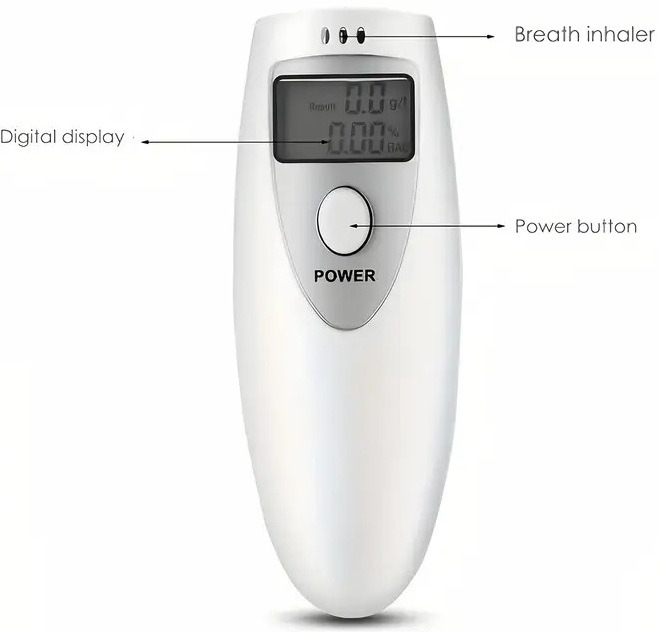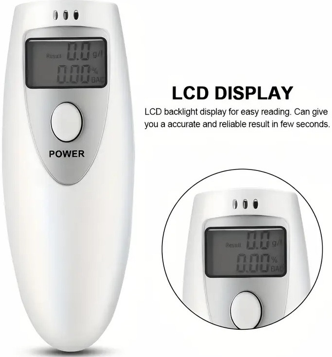 Алкотестер имеет очень компактные размеры: работает при помощи 2 сменных батареек ААА (в комплект не входят). Индикация – ЖК-дисплей. Диапазон действия 0.00-1.90g/L. Очень маленький вес. Принцип действия прибора очень прост. Необходимо подуть в специальное отверстие и на дисплее отобразится количество алкоголя в крови.