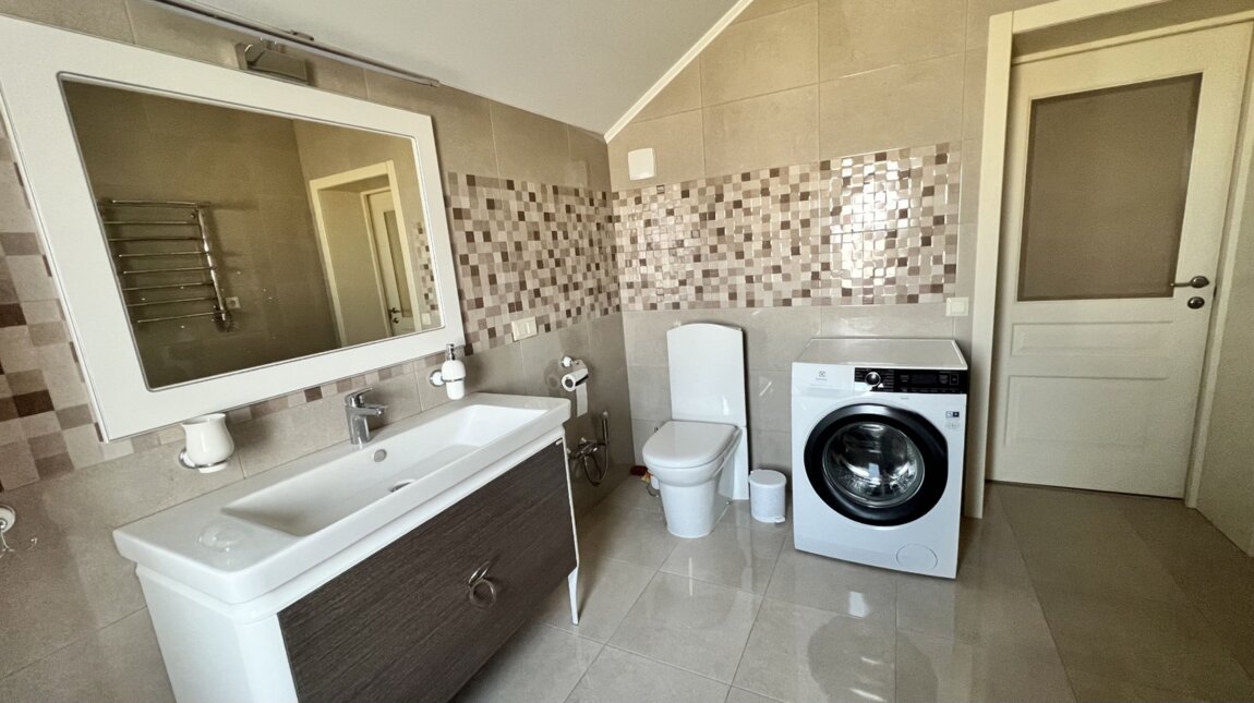 11806 Замечательный двухэтажный дом в Совиньоне, коттеджный городок Марин Виллас. Общая площадь 312 кв.м. Первый этаж: прихожая, гостиная, кухня. Так же гардеробная, санузел и веранда.Второй этаж: 4 спальни, кладовая и санузел. Современный ремонт в светлой цветовой гамме. Установлена система "теплый пол". Укомплектован мебелью и техникой. Есть подвал под всем домом. Весь дом утеплен. Автономное отопление от котла с терморегулятором. Предусмотрено видеонаблюдение и сигнализация. Располагается на участке, площадью 6 соток. Предусмотрен крытый навес для двух машин. Во дворе достаточно свободного места для размещения двух гостевых машин. Территория городка находится под круглосуточной охраной. Отличный вариант рядом с морем.