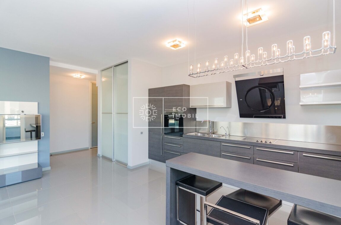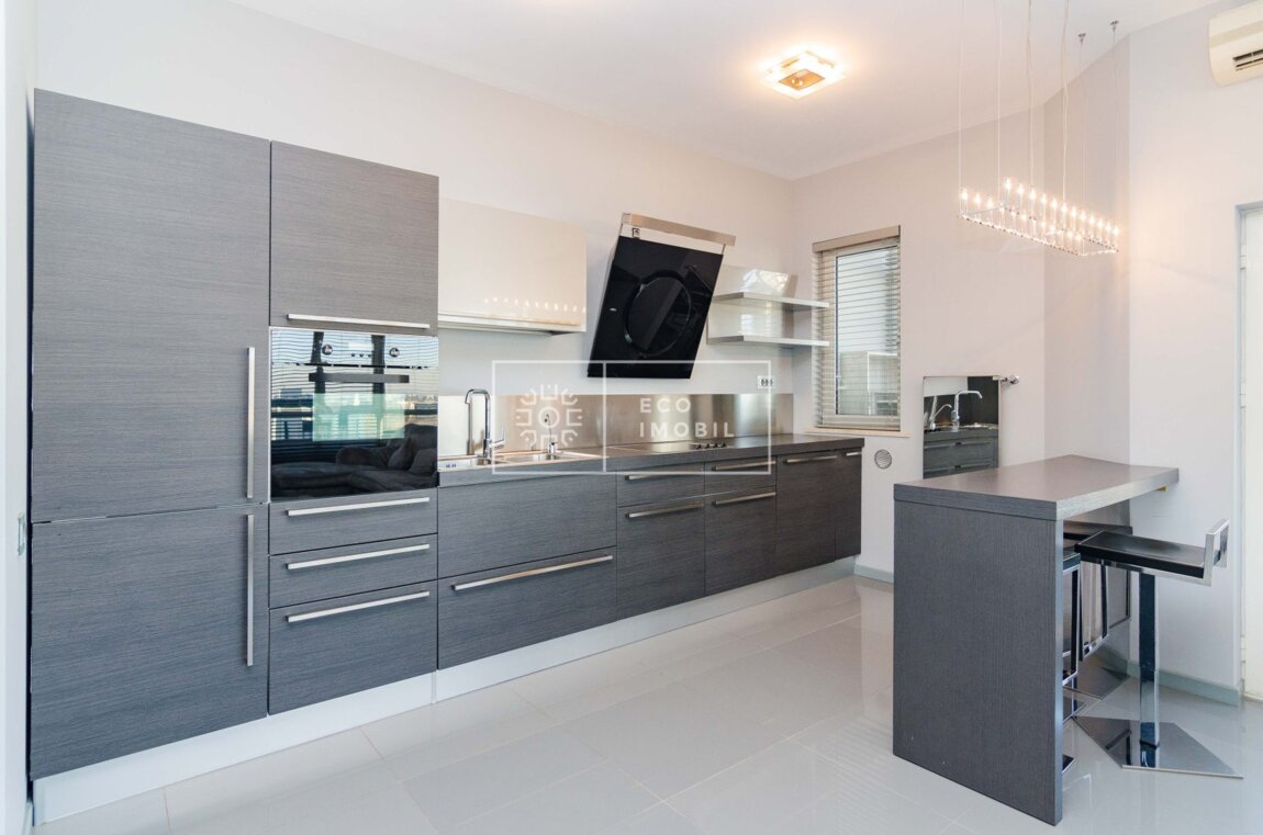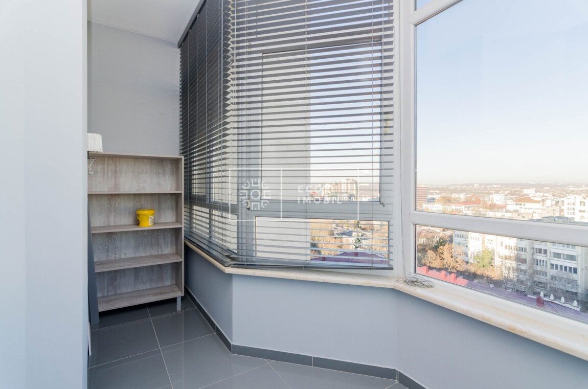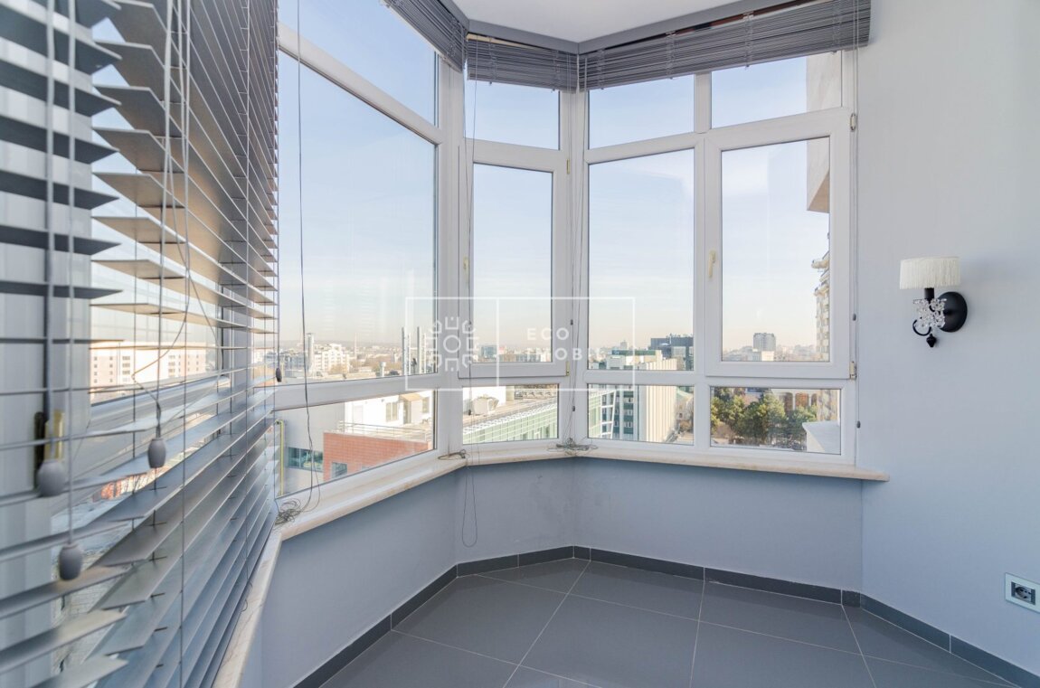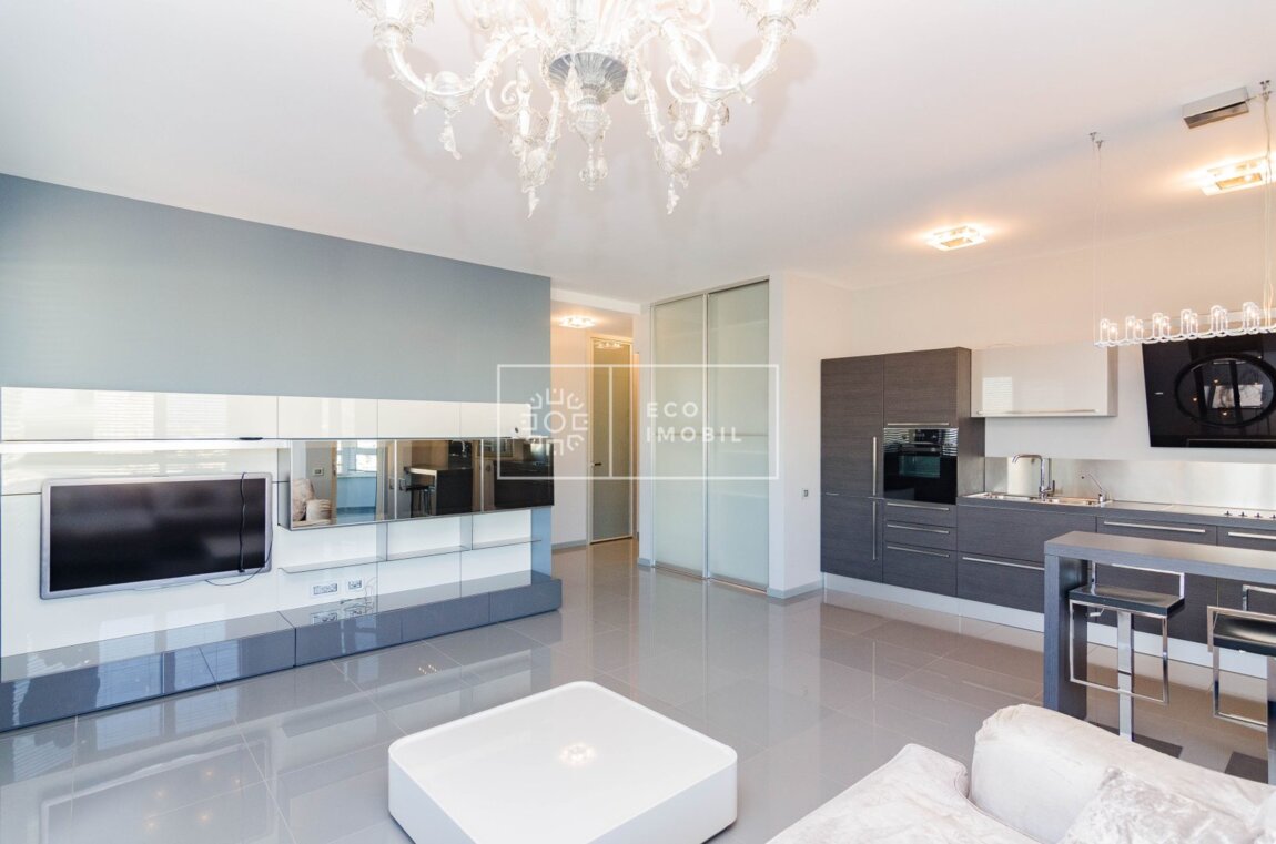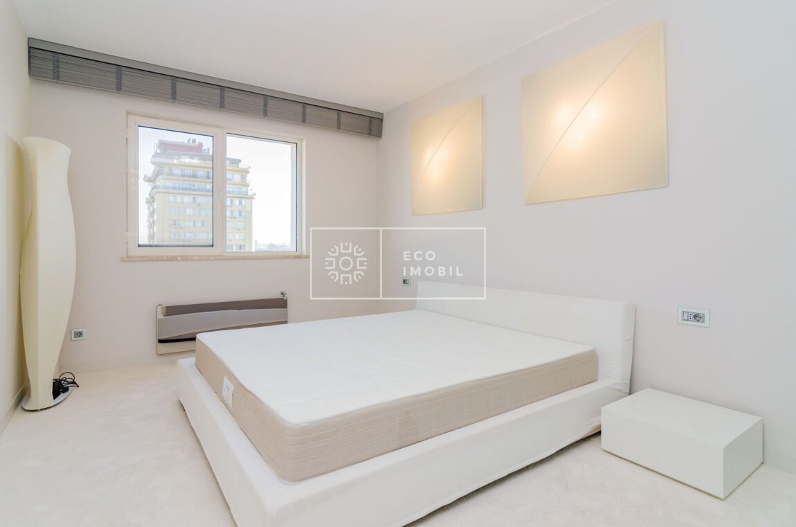 Vă propunem spre chirie apartament cu o odaie și living, într-un bloc de lux, amplasat în sect. Centru, str. București. Imobilul, cu o suprafață de 74 m.p., este poziționat la etajul 11 din 16. Caracteristici: design individual, tavane înalte, dispune de reparație calitativă si nouă, obiecte sanitare instalate, dotat cu mobilă și tehnică de uz casnic, încălzire autonomă, geamuri panoramice, pardosea caldă, conditioner, curte de tip închis. Compartimentare: 1 dormitor, living spațios cu bucătarie, antreu, bloc sanitar, garderobă și balcon. Loc de parcare subteran inclus in preț. Blocul locativ dispune de pază și supraveghere video 24/24, teren de joacă, zonă de agrement. În imediată apropiere se găsesc numeroase puncte sociale și comerciale, supermarket, farmacie, bancă, grădiniță, sală de fitness, parc etc. Acces facil la transport public în orice direcție a orașului. Предлагаем в аренду квартиру с одной спальней и гостиной в элитном доме, расположенном в секторе Центр, на ул. Букурешть. Недвижимость площадью 74 кв. м находится на 11 этаже из 16. Характеристики: индивидуальный дизайн, высокие потолки, качественный и новый ремонт, установленная сантехника, квартира оснащена мебелью и бытовой техникой, автономное отопление, панорамные окна, тёплый пол, кондиционер, закрытый двор. Планировка: 1 спальня, просторная гостиная с кухней, прихожая, санузел, гардеробная и балкон. Подземное парковочное место включено в стоимость. Жилой комплекс оснащён охраной и видеонаблюдением ...