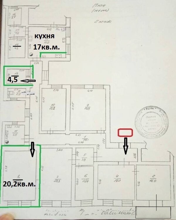 Две комнаты в коммуне: 24 кв.м и 10 кв.м. Общая площадь - 33,96 кв.м. оплачиваемая. Комнаты не через стенку, нужно пройти по коридору. Комната 24 кв.м, с двумя окнами, в очень хорошем состоянии, H = 4,5 м. Комната 10 кв.м, граничит с одной стороны с туалетом, с другой - с кухней, есть все технические возможности сделать в этой 1 комнате и свой с/узел и кухню. В комнате есть окно на коридор.Отопление от АОГВ. Цена 18000$ID 5394