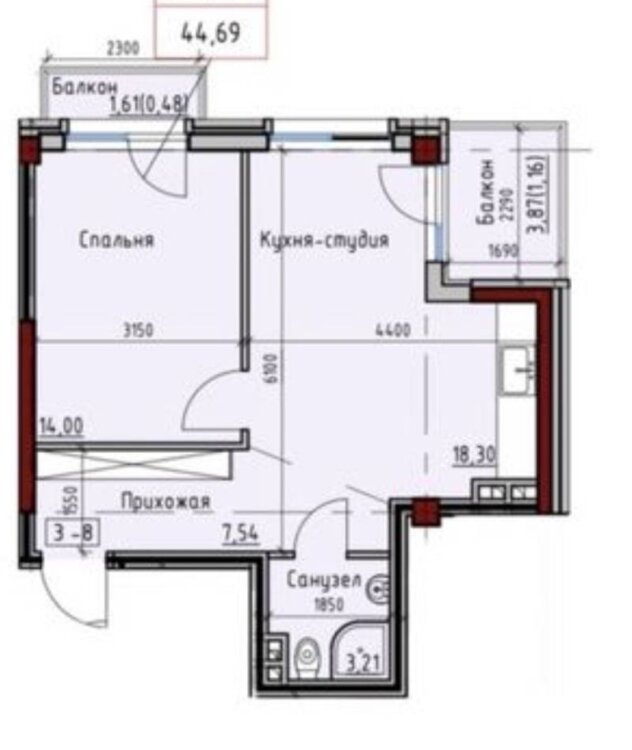 Общая площадь45 м²