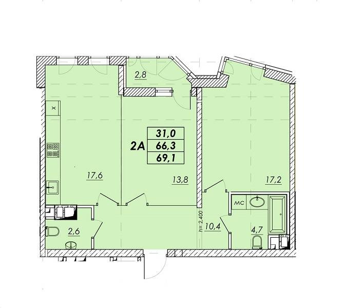 Общая площадь65.7 м²