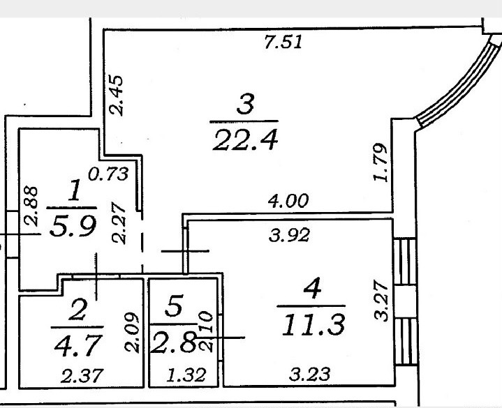 Жилая площадь11.3 м²