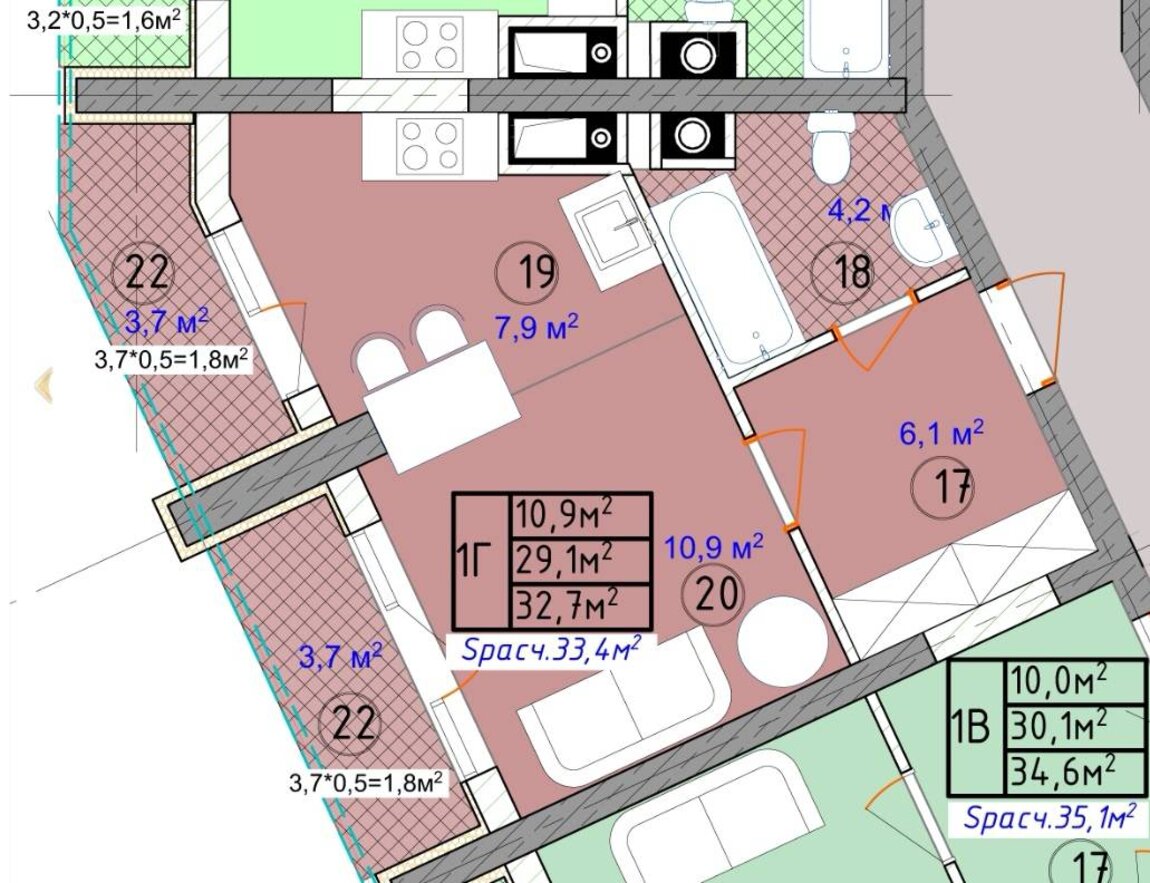 Жилая площадь18 м²