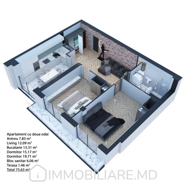 Apartament cu 2 camere, sect. Telecentru Vă propunem spre vânzare apartament cu 2 camere și living în varianta albă amplasat în sect. Telecentru, str. șoseaua Hâncești. Zonă cu infrastructură bine dezvoltată. Acces facil la transportul public în orice direcție a orașului. Parcare de tip deschis și loc de joacă pentru copii. Suprafața totală de 75,63 mp. Nivelul 4/6. Apartamentul dispune de: – încălzire prin pardoseală, – terasă, – geamuri termopan.