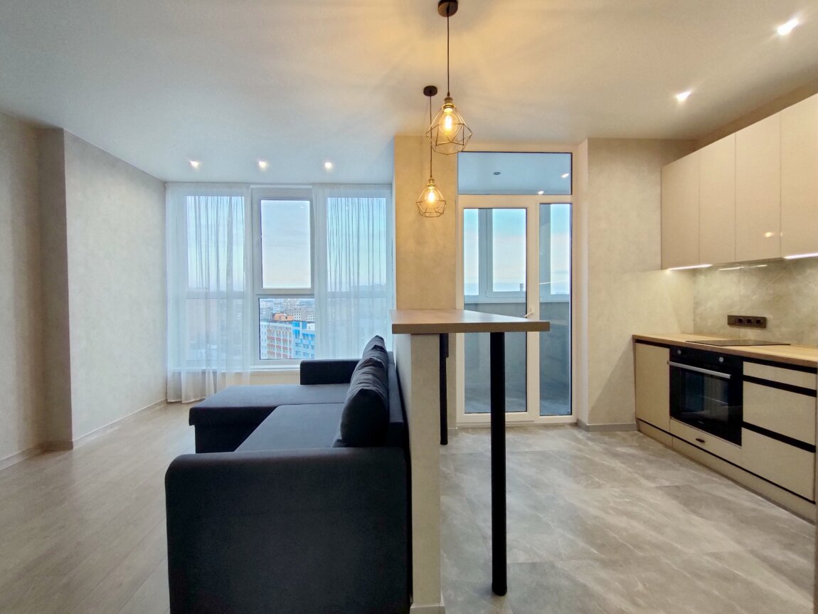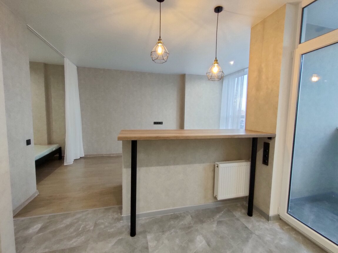 В продаже квартира с ремонтом в ЖК Бульвар Акаций на Бугаевской угол Средняя.Дом жилой, сдан в 2021 году.В квартире выполнен современный ремонт.Встроенная кухня с бытовой техникой: варочная поверхность, вытяжка, духовка, посудомоечная машина, холодильник, бойлер.Кухня-студия с барной стойкой плавно переходит в комнату с угловым диваном и выделенным местом с двуспальной кроватью и шкафом.Панорамные окна хорошо наполняют солнечным светом квартиру и позволяют наблюдать за видами города.Лоджия утеплена, подключен теплый пол, выведены розетки, интернет, что позволяет использовать ее как кабинет.Санузел совмещенный, установлена стиральная машина, гигиенический душ, унитаз с инсталляцией, душ.Подключена электричество и сантехника, интернет разведен по всей квартире.Коридор со встроенным шкафом прихожей.Коридор и кухня - плитка, в комнате ламинат. Стены обои. Натяжные потолки.Закрытая охраняемая территория, подземный паркинг/бомбоубежище, генератор, на первом этаже супермаркет Таврия, в пешей доступности АТБ, Идеал.Хорошая транспортная развязка. В пешей доступности Центральный Автовокзал, McDonald's, Староконный рынок, школа, детский сад, поликлиника, Дюковский парк, парк Савицкого. ID 42339