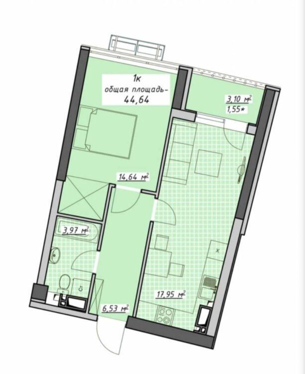 Общая площадь44.83 м²