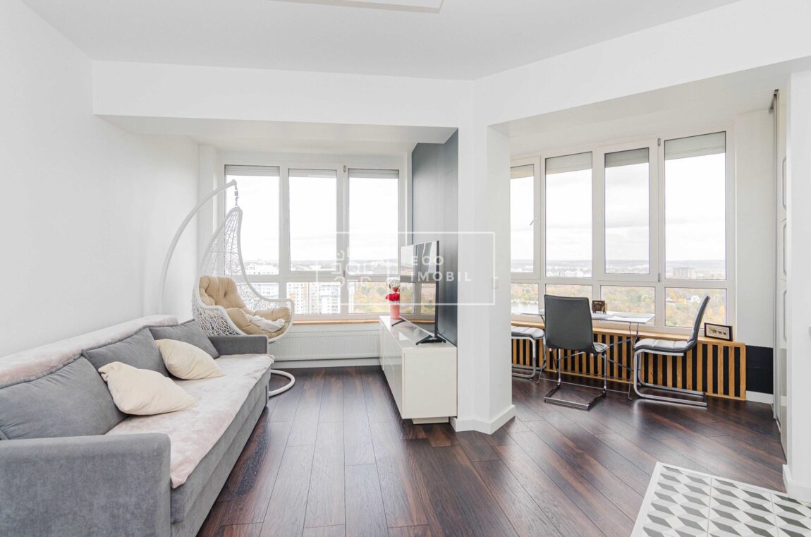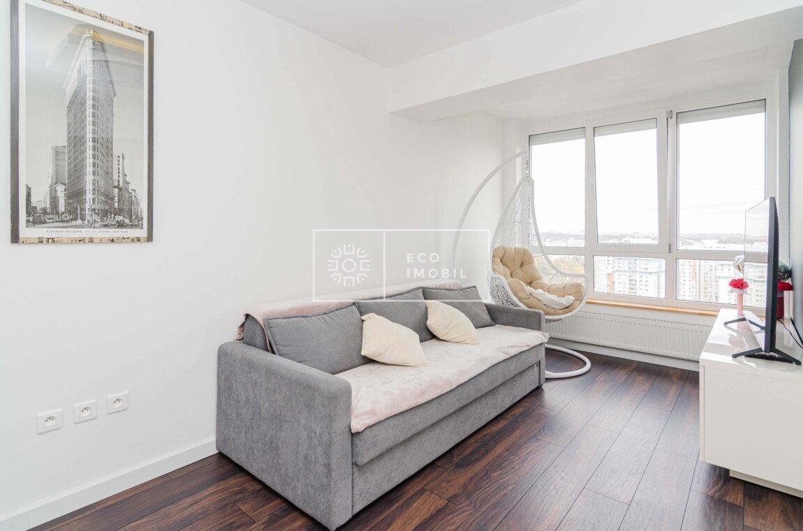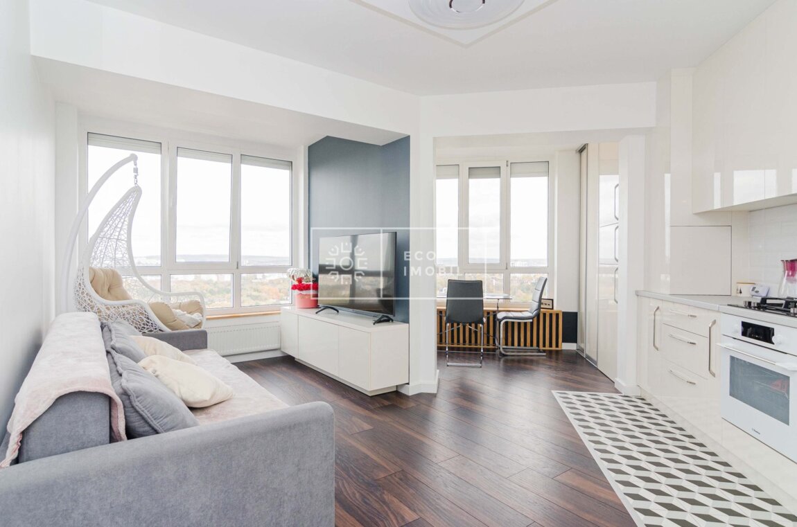 Se vinde un apartament modern, cu o suprafață totală de 47 m², situat într-un bloc nou, la etajul 13/15. Comod și luminos, cu design contemporan, complet dotat și mobilat – totul este pregătit pentru mutare imediată. Caracteristici: 1 dormitor + living spațios Bucătărie modernă, complet utilată Baie amenajată cu materiale de calitate Balcon panoramic cu priveliște frumoasă asupra orașului Încălzire autonomă, aer condiționat Bloc cu lift modern, curat și sigur În inima sectorului Centru – în apropiere de universități, magazine, transport public, parcuri și instituții medicale. Продается современная квартира общей площадью 47 кв.м., расположенная в новом доме, на 13 этаже из 15. Удобная и светлая, с современным дизайном, полностью меблирована и оборудована — готова к немедленному заселению. Характеристики: 1 спальня + просторная гостиная Современная кухня, полностью оснащенная Ванная комната с качественной отделкой Панорамный балкон с красивым видом на город Автономное отопление, кондиционер Дом с современным лифтом, чистый и безопасный В сердце района Центр — рядом с университетами, магазинами, общественным транспортом, парками и медицинскими учреждениями.