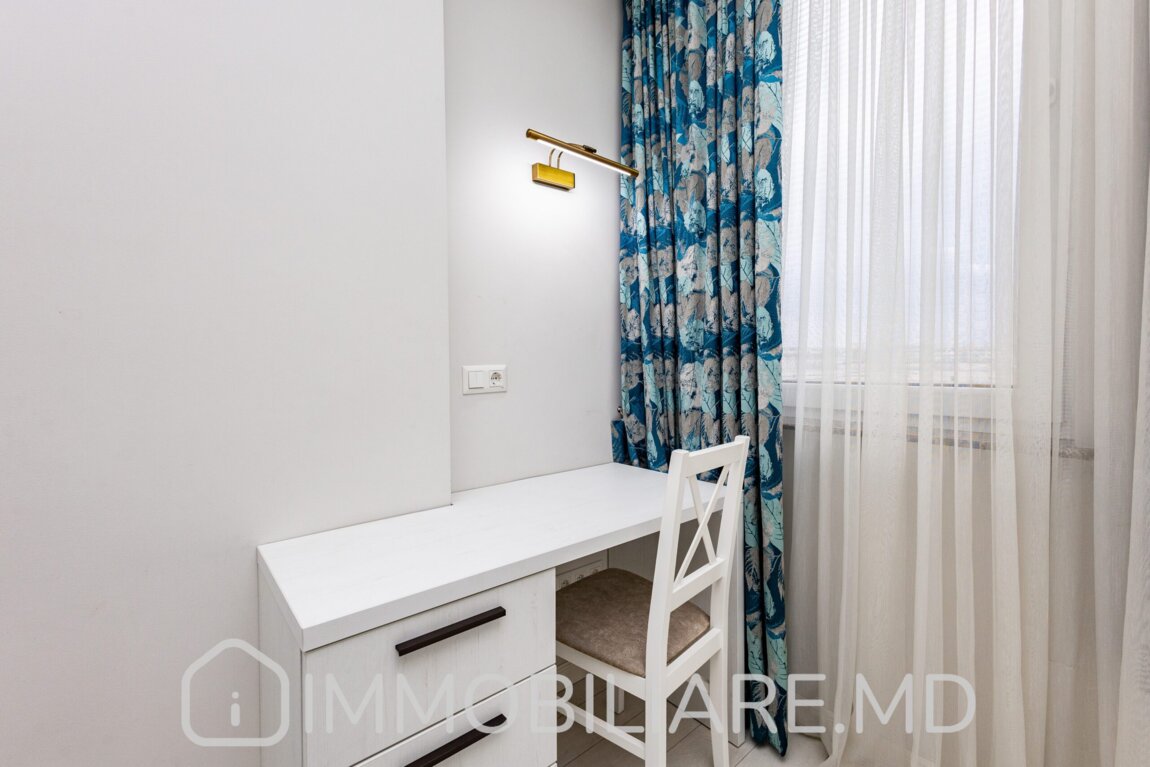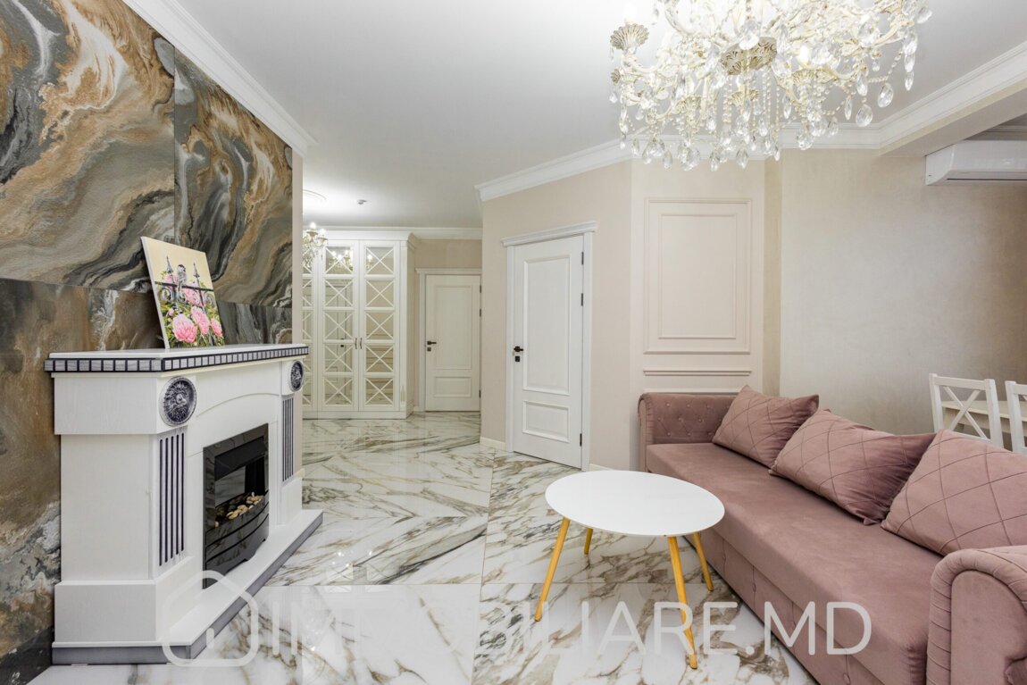 Apartament cu 2 camere, sect. Centru Vă propunem spre vânzare apartament cu 2 camere și living amplasat în sect. Centru, str. Aleksandr Pușkin. Zonă cu infrastructură bine dezvoltată. Acces facil la transportul public în orice direcție a orașului. Parcare de tip deschis și loc de joacă pentru copii. Suprafața totală de 80 mp. Nivelul 7/8. Apartamentul dispune de: – aparat de aer condiționat;, – încălzire prin pardoseală;, – geamuri termopan;, – șemineu; – toată mobila și tehnica necesară pentru un trai confortabil.