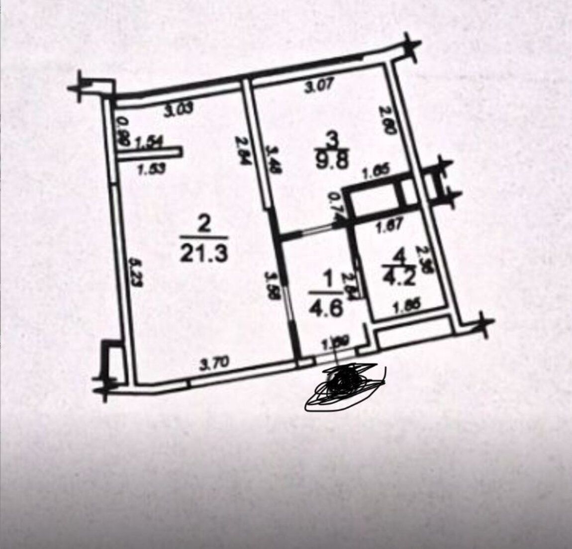 Квартира распланирована в просторную светлую комнату 21 кв м и уютную кухню 10 кв м, коридор и смежный санузел с душкабиной