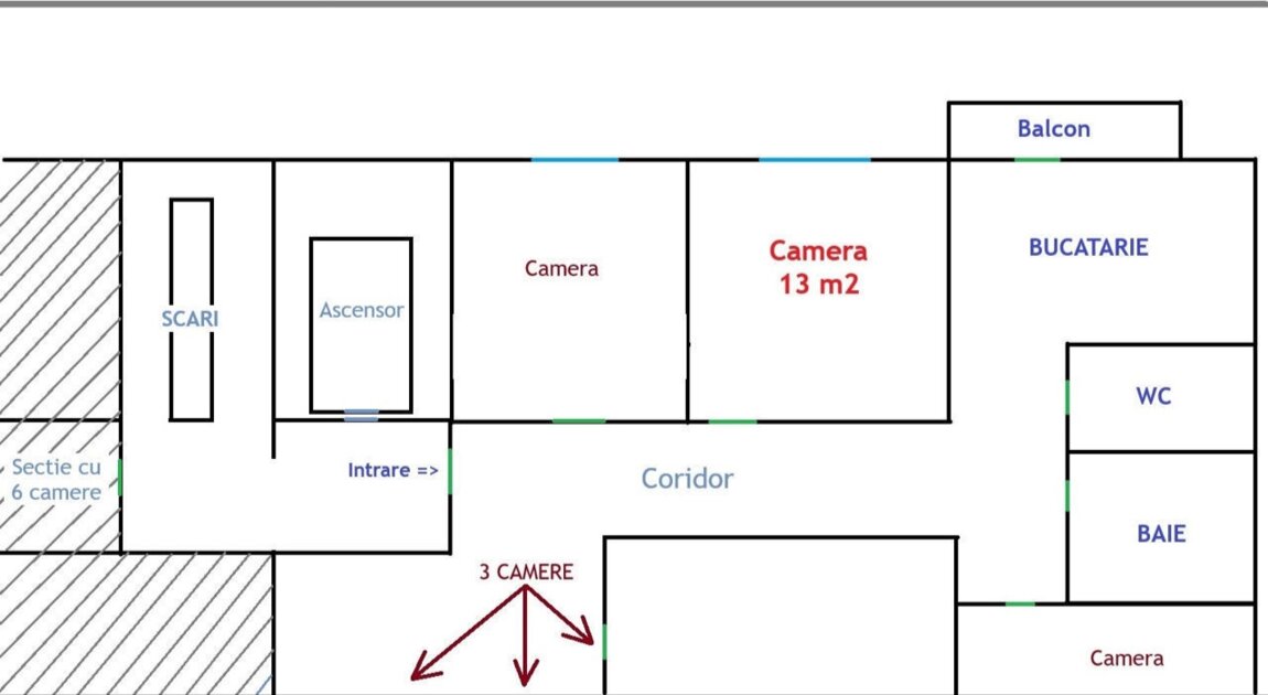 Сamerа de vânzare, câte 17 mp. in sectie