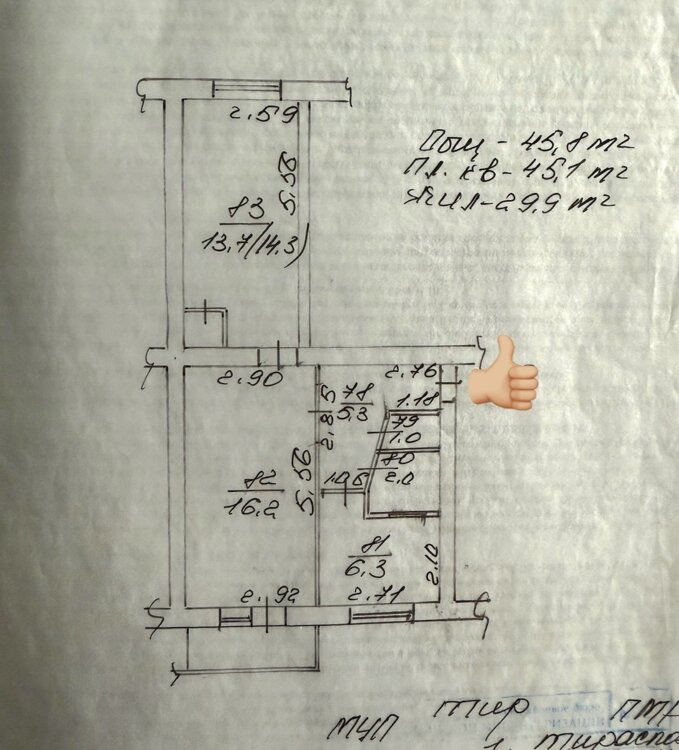 Общая площадь - 46 кв. м