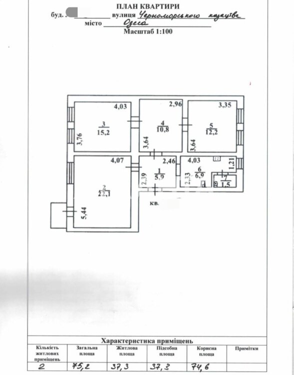 Общая площадь квартиры -75 м. кв., этаж 2/2