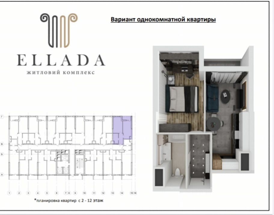 Продается однокомнатная квартира в ЖК " Эллада"/ Генуэзская. Общая площадь 41.5 м. 9/24 эт. Дом сдан. Состояние от строителей. Переуступка.
