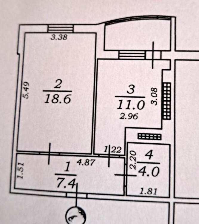 Комната - 18 кв. м, кухня увеличена - 15 кв. м.