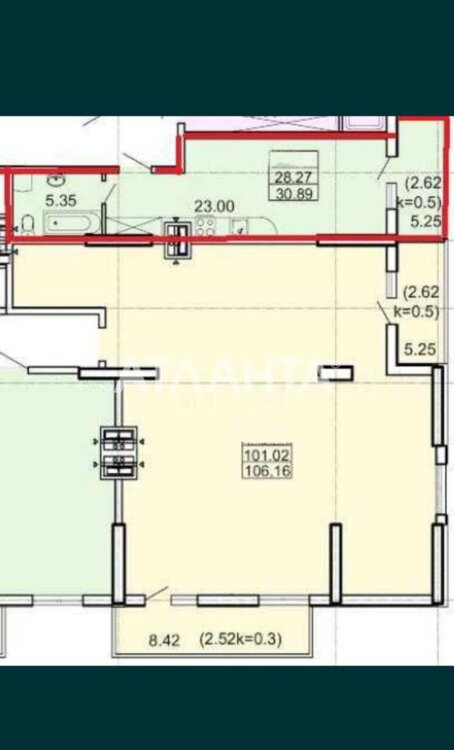 Общая площадь квартиры -30 м. кв., этаж 7/26