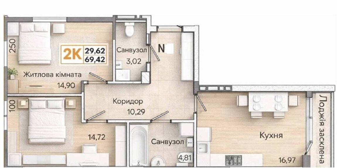 Общая площадь69 м²