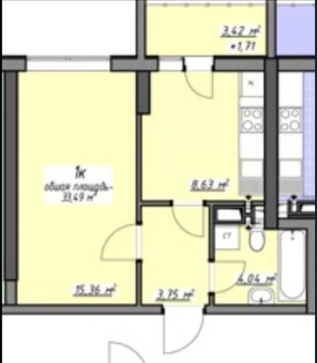 Общая площадь33.3 м²