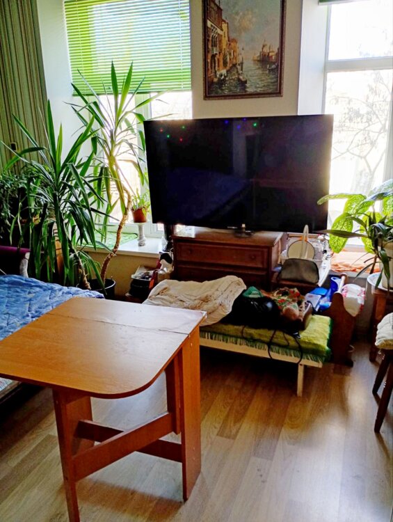 Имеется подсобное помещение, из которого сделали дополнительную кухню с газовой плитой и горячей водой. Квартира для любителей жить в историческом центре.