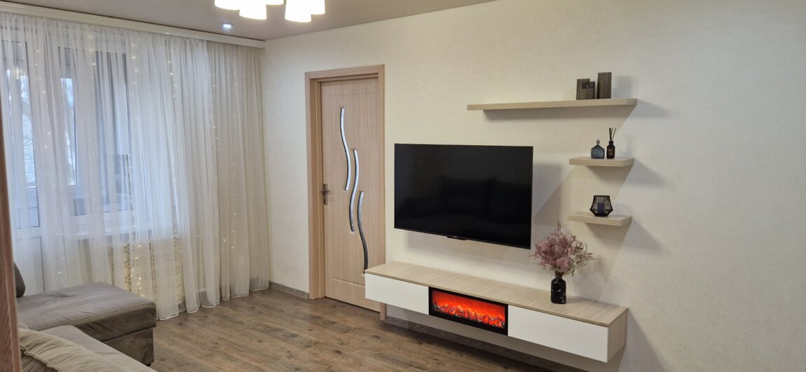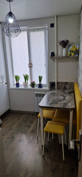 Общая площадь — 46 кв. м. Квартира расположена на 4 этаже 5-этажного дома, в середине здания — тёплая и комфортная. Солнечная сторона обеспечивает много естественного света в течение дня.