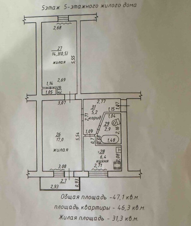 Квартира общ. S - 47,1 кв. м.