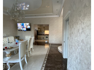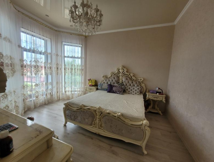 Дом в Киевском районе недалеко от моря. Ремонт в классическом стиле. Два санузла. Панорамное застекление. Участок прямоугольной формы с широким фасадом. Вымощен плиткой. Зеленая зона с деревьями и кустарниками. Место для автомобиля. Мебель и техника по договоренности. ID 6980