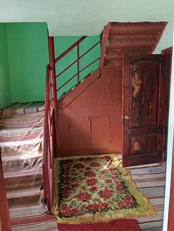 Первый этаж - кухня, санузел, прихожая. Второй этаж - две большие комнаты, коридор.