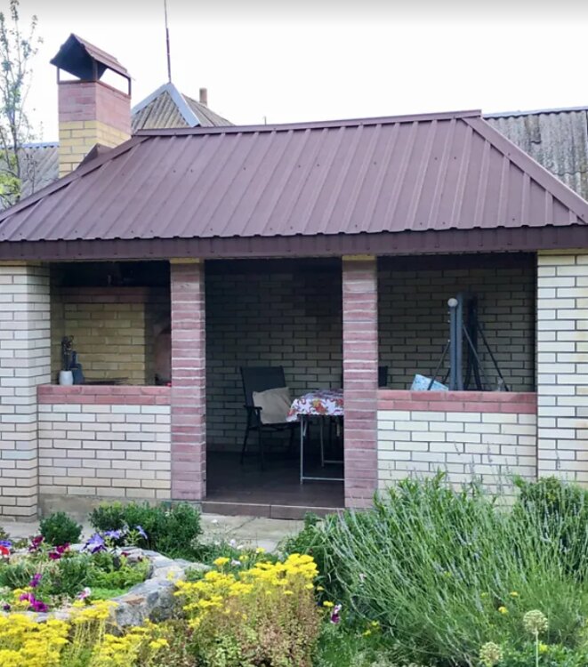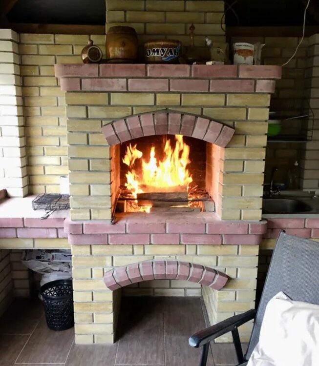 Отдельно стоящая беседка с красивым камином