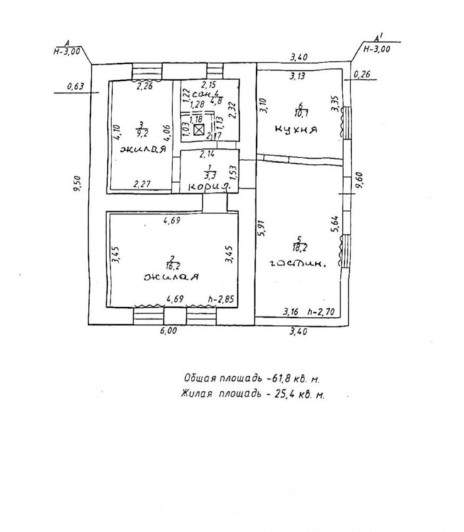 ◻️ Общая площадь дома: 61 кв. м