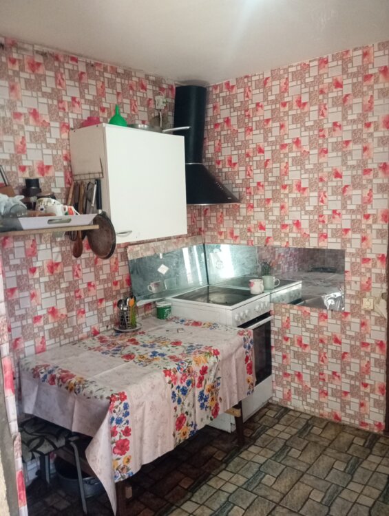 Дом - три комнаты, кухня и душевая. Просторный коридор, комнаты не проходные. Есть рабочая печка в доме. Сделан хороший ремонт. На полу плитка, потолок- гипсокартон, с подсветкой. Можем оставить мебель и техника. По договорённости. Торг при осмотре