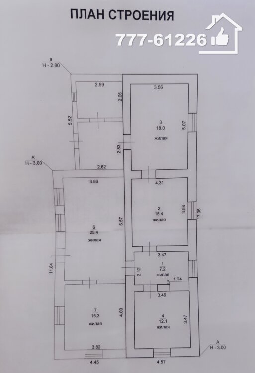 Дом состоит из: прихожей, двух коридоров, шести жилых комнат (три проходные), летней кухни и санузла.