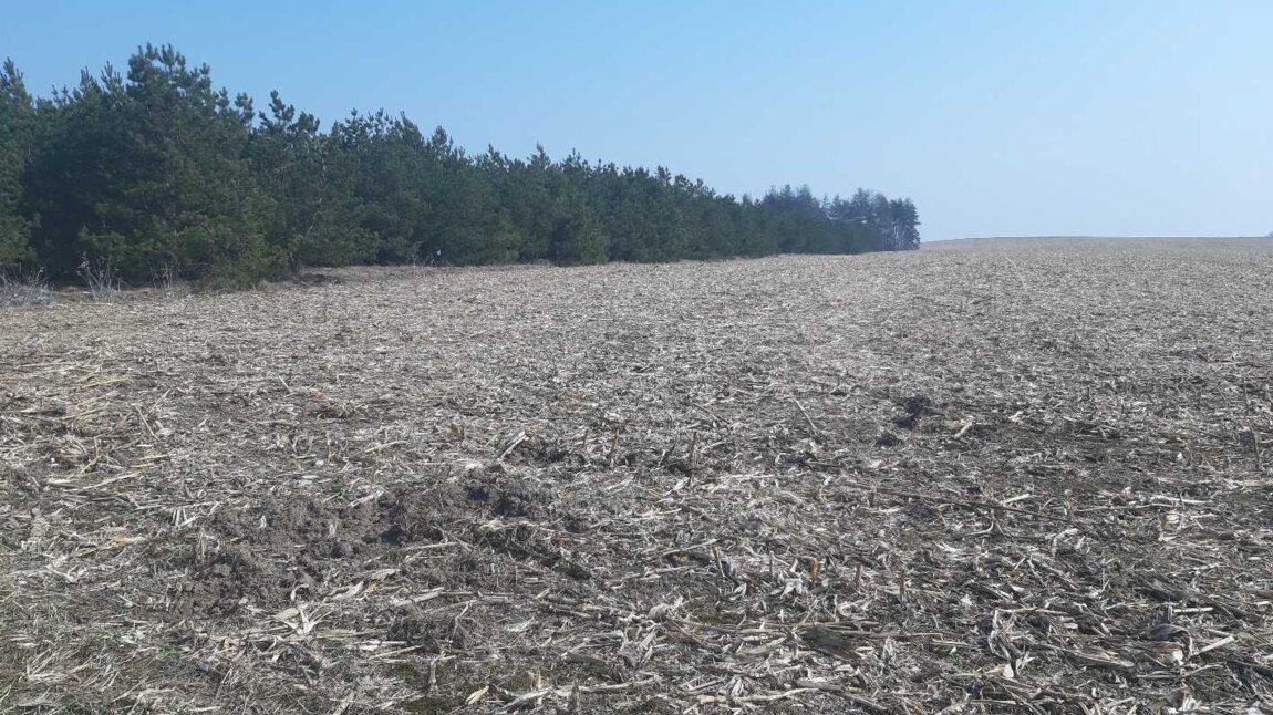 Ділянка вільна від забудови, має неправильну прямокутну форму з рівнинним рельєфом, знаходиться у відкритому полі, яке тривалий час обробляється під посів різних сільськогосподарських культур. Частину ділянки займають багаторічні зелені насадження (хвойний ліс). Комунікації відсутні. Ділянка має зручний під’їзд рунтовою дорогою.