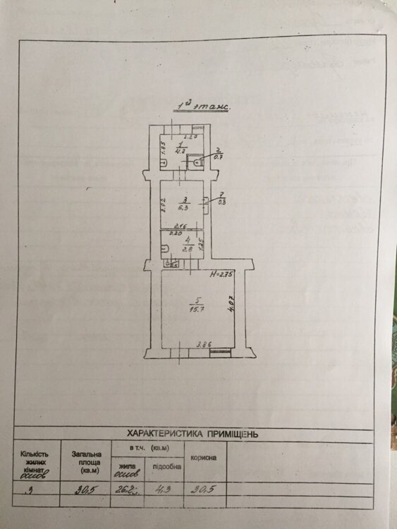 Общая площадь30.5
