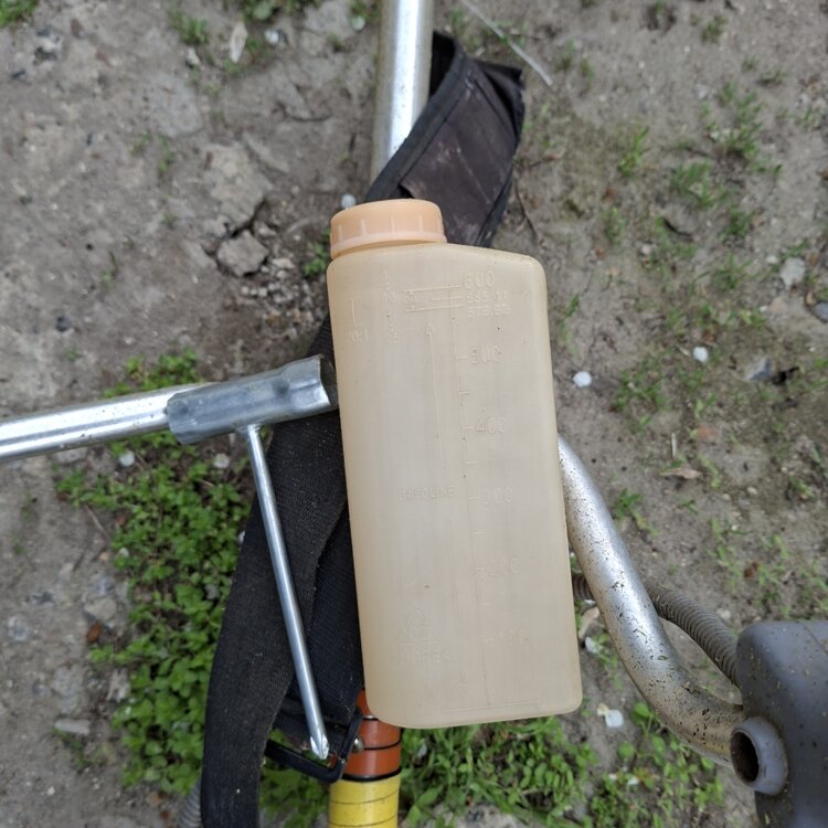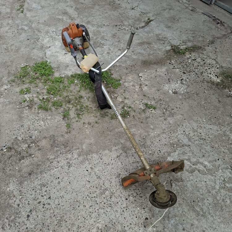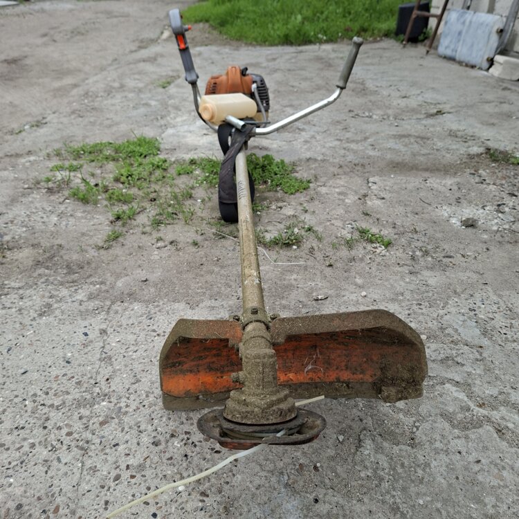 В комплекте мерная бутылка, ключ, порция заправленной лески, полный бачок бензина.
