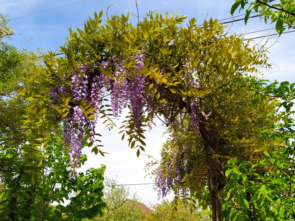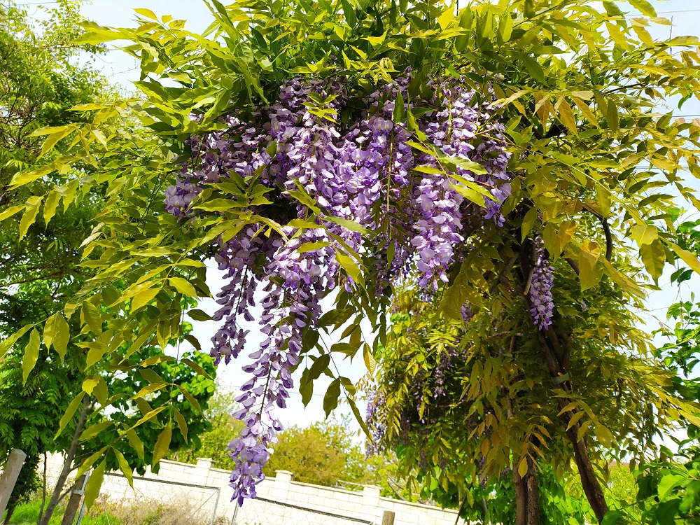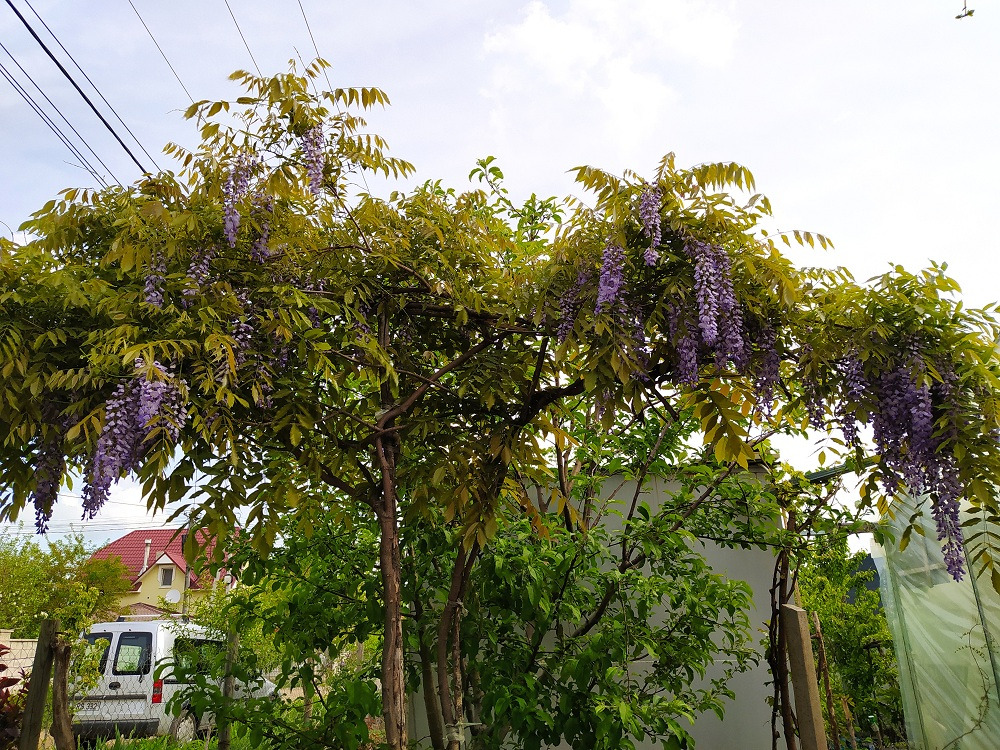 Глициния — растение с необычными цветами, напоминающие гроздья «цветущего винограда». Это вьющееся растение, зацветает ранней весной, его цветение может продолжаться до осени. Глициния оставляет неизгладимое впечатление у тех, кто хотя бы раз видел ее цветение. Глицинию используют в ландшафтном дизайне, ее сажают у беседки, перед входом в дом, украшают ею голую стену. За один год может расти до 2 метра и более. Живет более 100 лет. могут выдерживать до -28 С.
