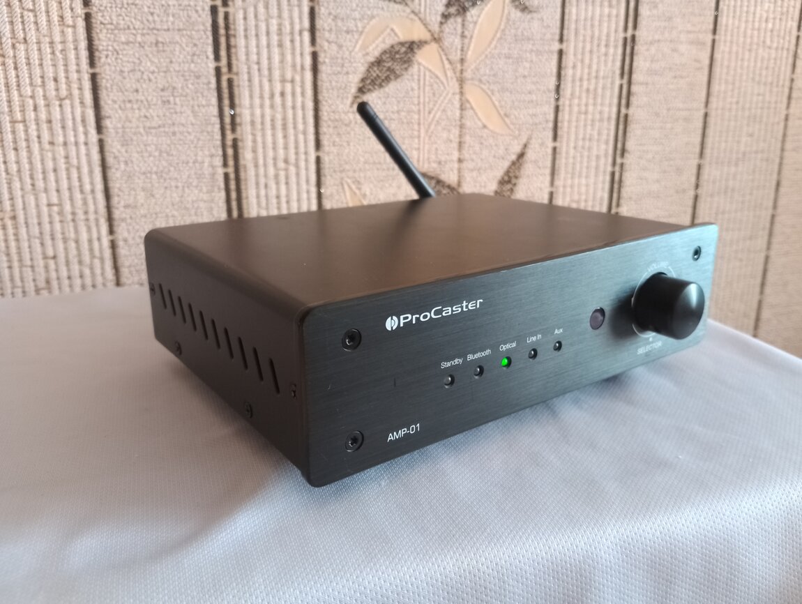 Продам недорого отличный стерео усилитель ProCaster AMP-01, средняя рабочая мощность 2х50 Вт (4 ом), входы: беспроводное подключение по Bluetooth, Optical, Line in, Aux, выход на активный сабвуфер, регулятор громкости со встроенной кнопкой для выбора источника сигнала, позолоченные зажимы для проводов, полностью весь металлический, размеры: (ширина 20 см, глубина 15 см, высота 5 см), вес 2 кг, усилитель имеет компактные размеры и не занимает много места и в этом большой плюс, отличная выходная мощность и высокая громкость, по звуку ничем не хуже чем обычные усилители с такой же мощностью. Единственное нет пульта, он здесь вообще и не нужен. Сделан в 2018 году (страна производитель Финляндия, Хельсинки). Новый стоил 149€. Цена 600 руб. Тирасполь. Тел. 77851177