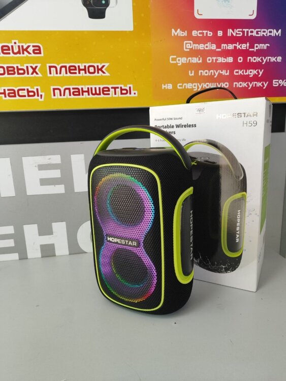 Мощная и компактная портативная колонка, подходит и для дома и для выезда на природу.