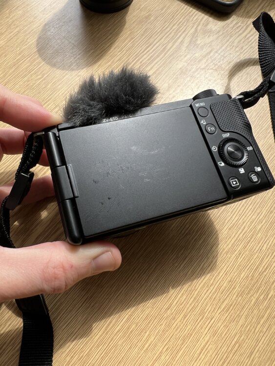 На задней крышке экрана присутствуют едва заметные микроследы от ремешка — исключительно косметический момент, на работу камеры никак не влияет.
