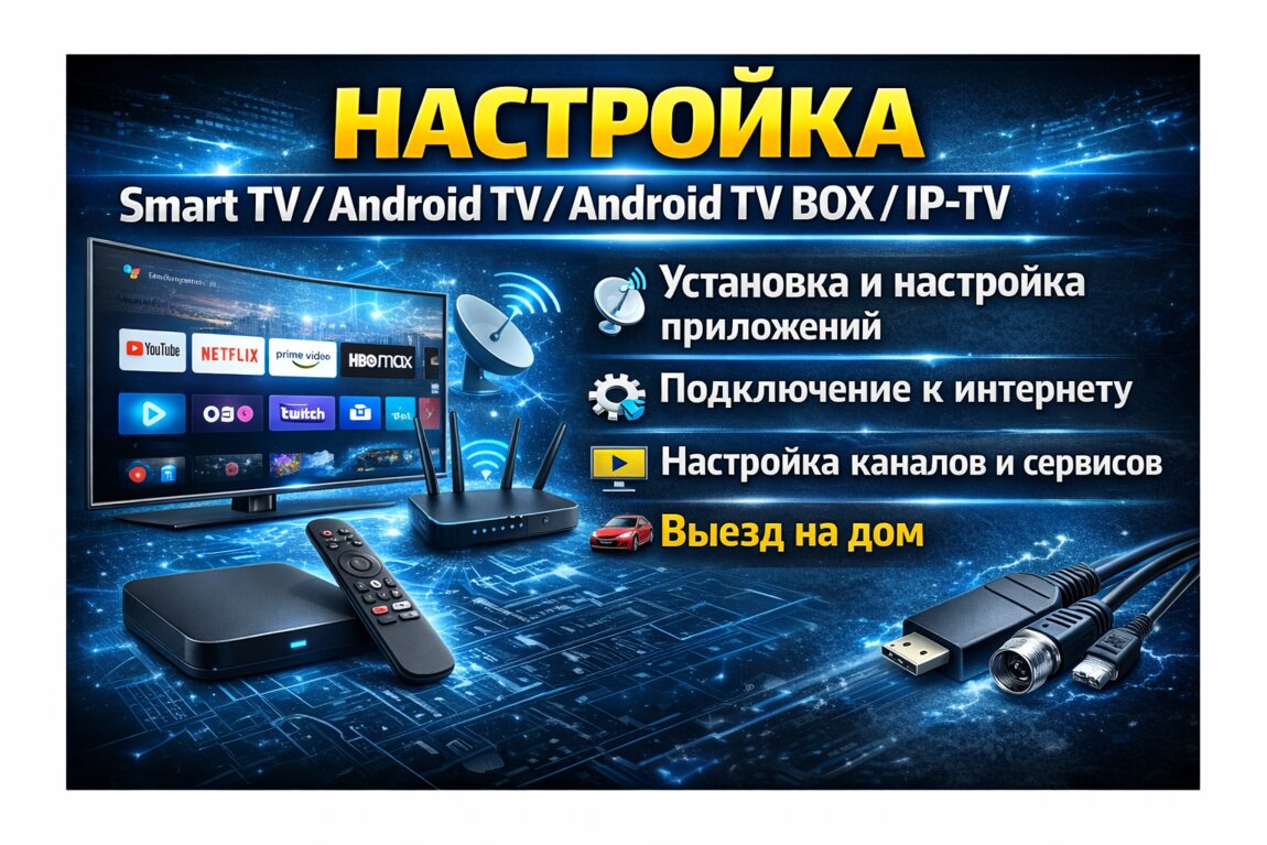 Настройка ТВ Smart TV Android TV Android TV BOX IP-TV.. Выезд на дом