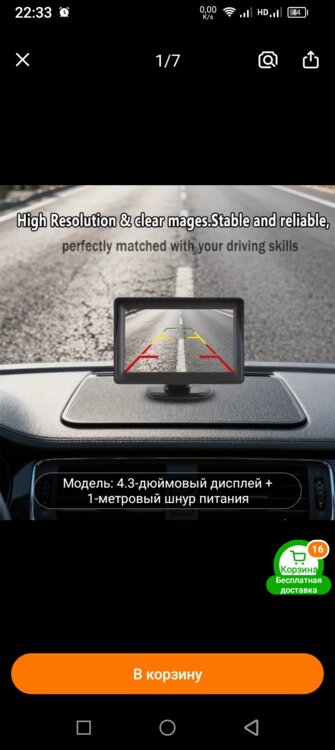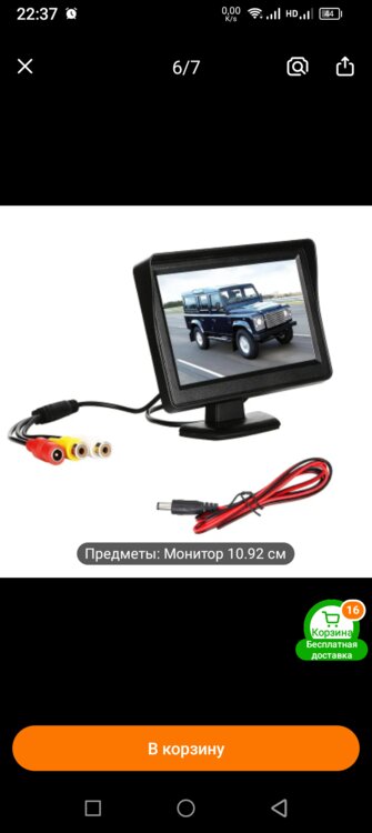 Камера, монитор 5 дюймов, кабель питания 2шт., провод 5м. от камеры до монитора.