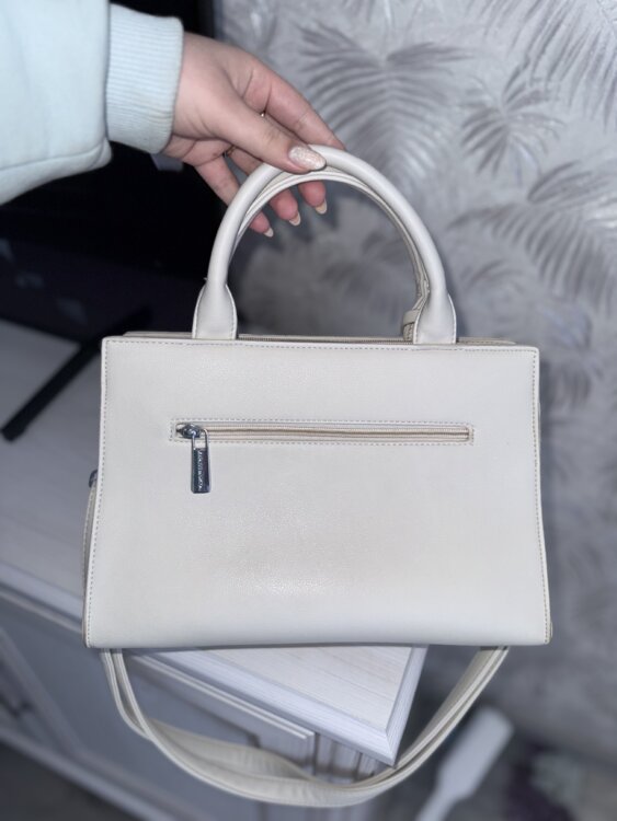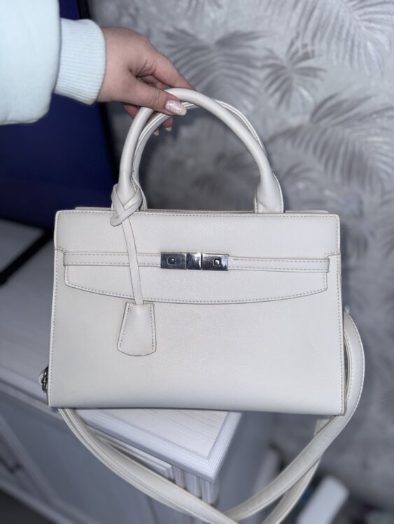 Кожзам, молочная, все змейки рабочие. Не подошла по размеру и по итогу взяла меньше размером себе. Покупала эту сумку в ТЦ Восточный в Тирасполе за 700 руб.