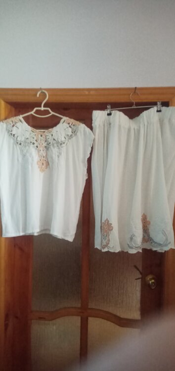 Летний Женский костюм немецкий 38р-р, (46/), на всех юбках регулируется резинка,, жакет и юбка выбитое шитьё по краю, карманы внутри юбки, плечики в жакете. длина юбки -88см., длина жакета спинка -85см., состав ткани: хлопок + вискоза., второй летний костюм ручная работа Индонезия, 100%-вискоза, длина юбки -65см., длина блузы-57см., третий летний костюм: топ+ юбка впереди планка на пуговицах длина топа от плеча -63см., длина юбки -79см., внутри карманы, состав ткани Котон.