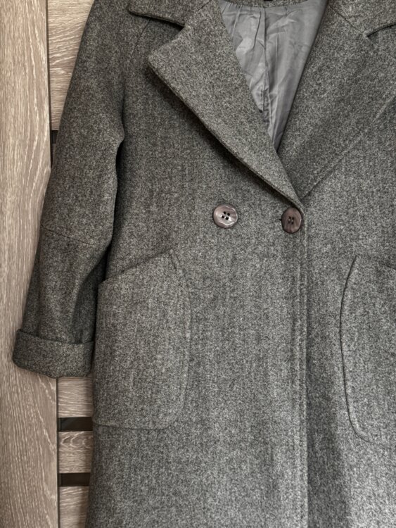 Классическая модель с двубортной застёжкой, аккуратный крой, удобные карманы. Подойдёт как на повседневную носку, так и под более строгие образы.