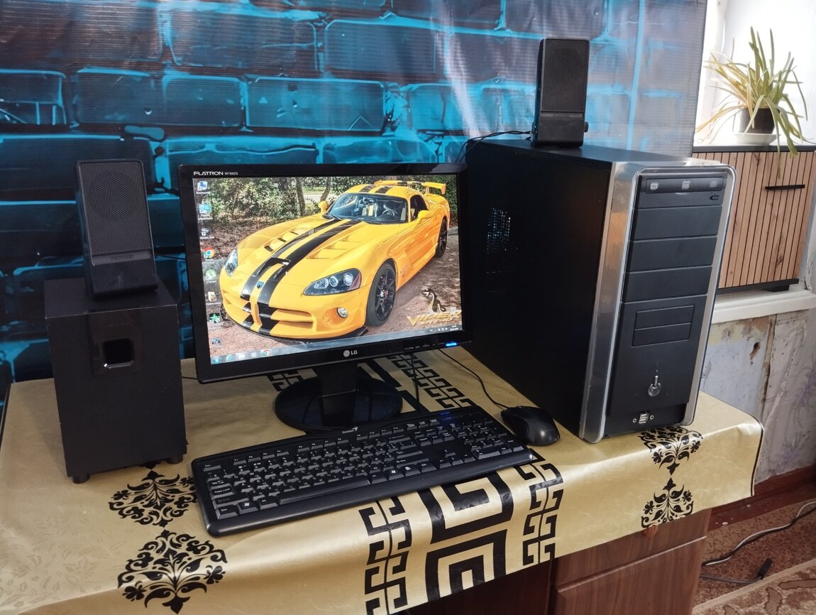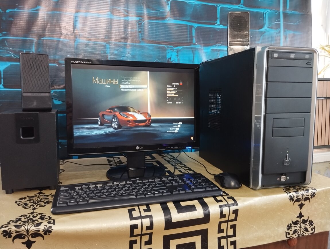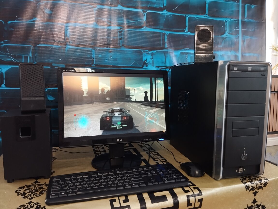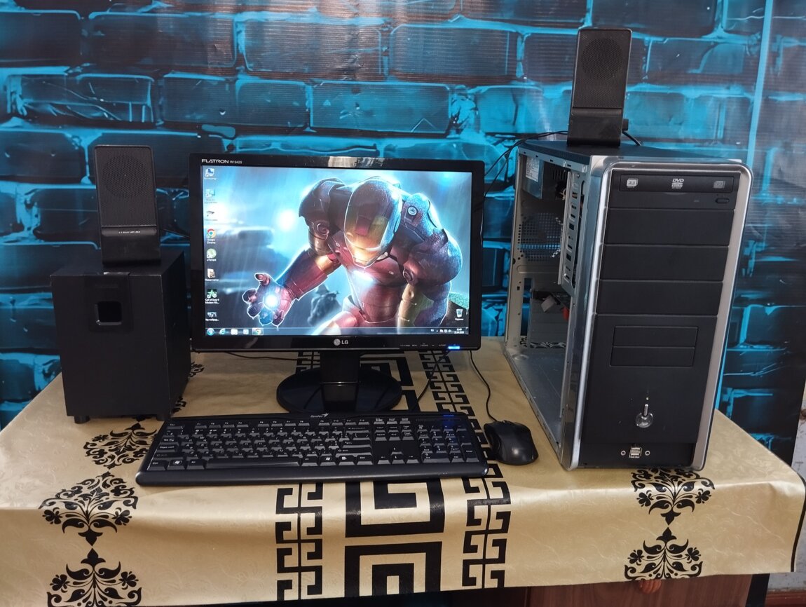 Продам шустрый ПК в полной комплектации, Монитор, Системник, клавиатура, мышка, все провода + саббуфер с колонками.