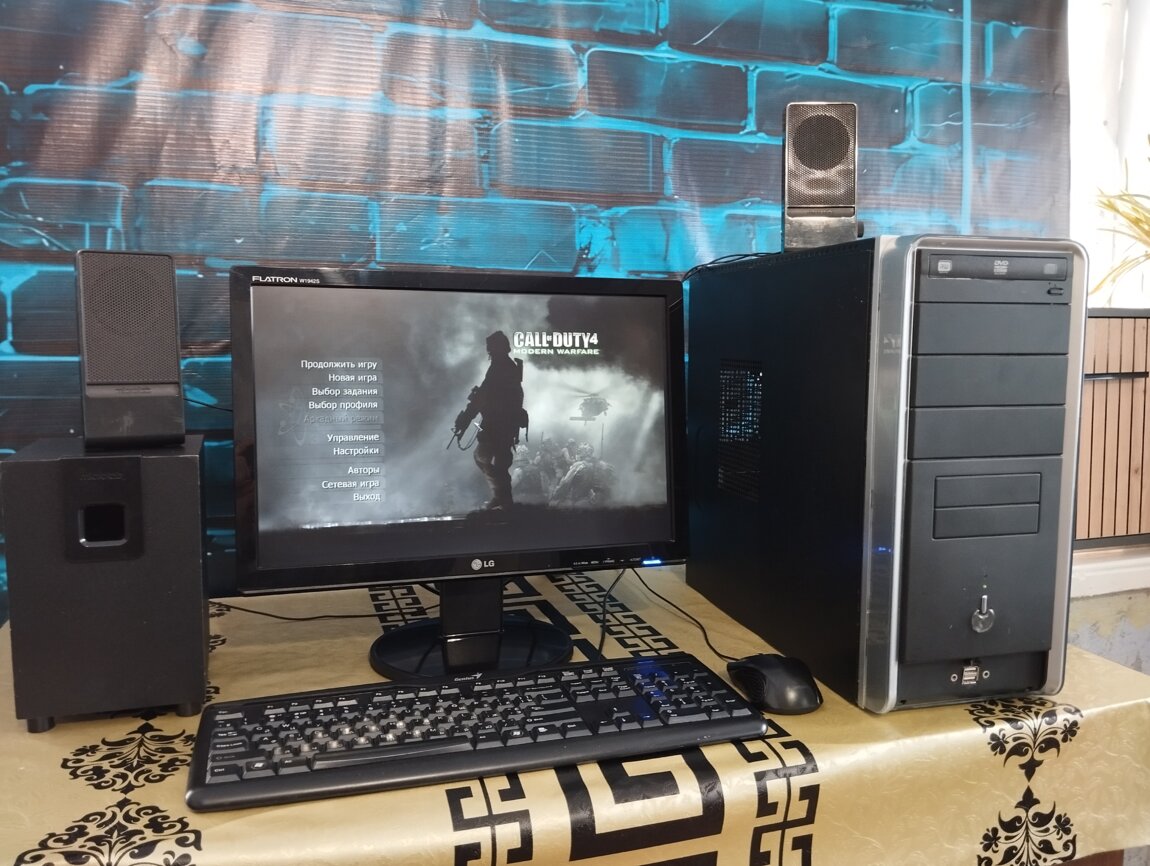 + Саббуфер microlab с колонками, хороший, чёткий и звонкий звук.